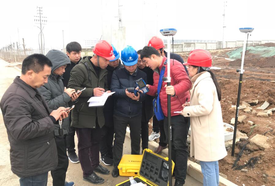镇华集团项目部技术人员进行户外RTK测绘设备