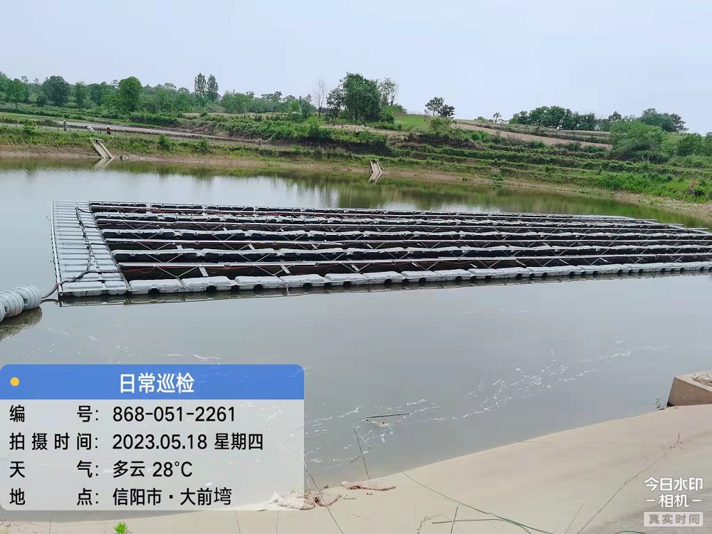 该项目总计占用水面约540平方米,装机容量为484KW,预计年平均发电量58万千瓦时,采用的是一体化浮筒支架安装,水上漂浮模式,攻克了水下电缆敷设、电缆连接以及水上安装等技术难题,具有节约土地资源、抑制藻类繁殖、光照充足均匀、运营维护方便等传统陆地光伏设施不具备的优势。