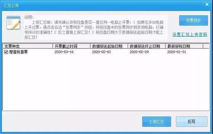 1.请您在计算机连接互联网状态下登陆开票系统,开票系统自动进行上报汇总并提示“征期自动汇总上传成功”。(如未连接互联网,电脑桌面右下角每天会弹框提示一次,直至征期结束)