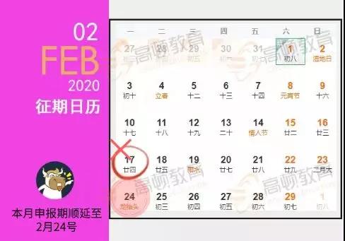 2020年2月征收期非常特殊,因为疫情影响,国家税务总局税总函〔2020〕19号在全国范围内将2020年2月份的法定申报纳税期限延长至2月24日。