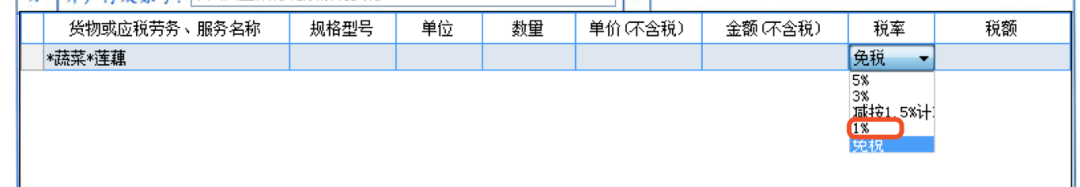 3.发票填开2020年3月1日至5月31日,小规模纳税人(含转登记小规模纳税人)在发票填开界面,税率下拉列表中新增1%征收率选项。