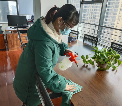 公司对全体员工去向、返程、隔离等情况全面核实,确保不漏一人,异地返岗人员均已严格落实居家隔离和定期报告;对办公场所实行人员登记、测量体温制度;进出办公场所需用净水消毒凝胶进行消毒;安排专人对公共区域、办公场所进行循环消毒工作(不少于4次/天),并按时通风;提倡员工自带餐食,尽量减少外出。