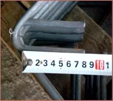 钢筋加工:I级钢筋末端需做180°弯钩,弯曲直径D取钢筋直径d的5倍,平直部分长度取钢筋直径d的5倍;箍筋弯钩135°、平直部分长度取10 d。钢筋定位钢筋端头应切齐、磨去飞边毛刺,端头刷防锈漆。