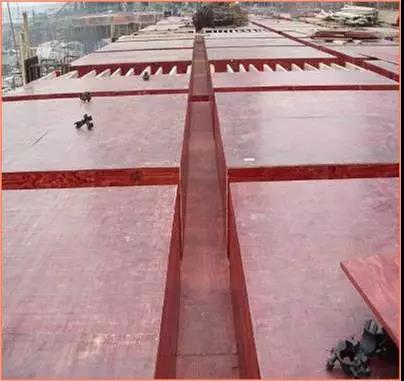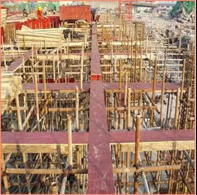 楼板模板:模板支撑体系经过严格验算,并履行审批手续,确保支撑体系的刚度、强度及稳定性。严格控制模板起拱高度,跨度大于或等于4m的梁板按2/1000起拱。跨度8.4m楼板按1.5cm起拱。