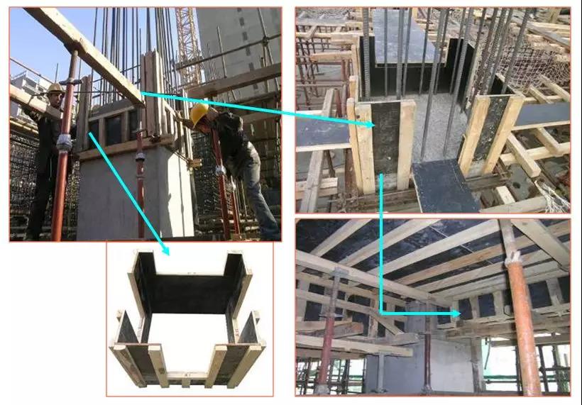 窗口支撑:木材宜采用不易变形的红白松,模板阴角和阳角用角钢与木模固定,同时洞口模板内加支撑。浇注混凝土时从窗两侧同时浇筑,避免窗模偏位。