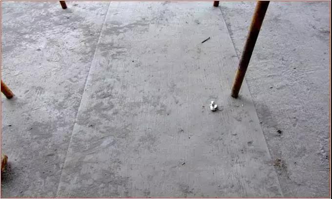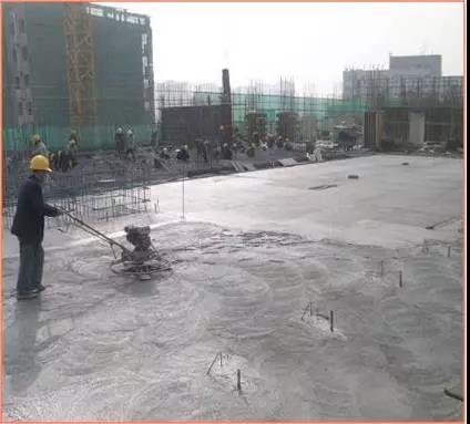 楼板混凝土浇筑:混凝土初凝前用2m刮杠沿四周墙的墙根处向中间刮平,再用压光机压实。终凝前用木摸子搓平,再用铁摸子压实2-3遍,表面塑料条帚扫毛。