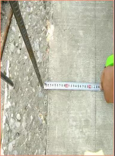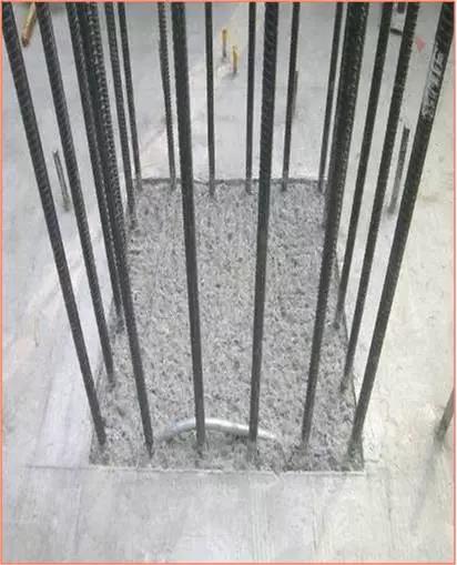 施工缝处理:墙、柱水平施工缝在墙、柱边线内再弹一道切割线,用无齿锯切割,切割深度3cm。柱、墙上顶水平施工缝按标高线往上5mm再弹一道切割线,进行切割。下图为框架柱柱头和柱根部处理