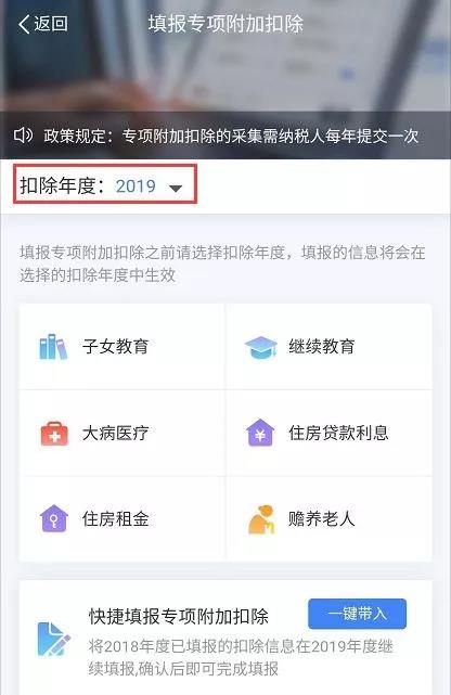注意扣除年度选择2019年,然后填写专项附加扣除信息!