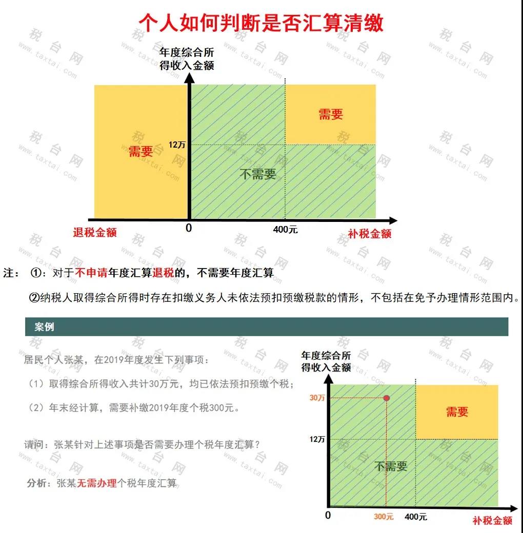 记住一句话,等于0不汇算,大于或小于0除豁免情况外都需要进行汇算清缴。换种说法就是凡是涉及退税或者补税,除个别豁免情况外,都需要进行汇算情况。