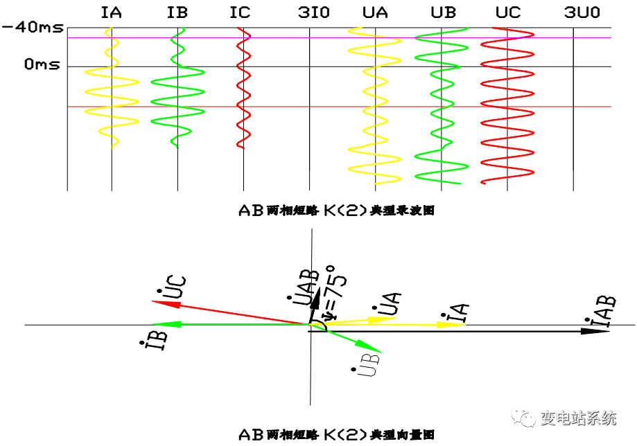 分析两相短路故障录波图要点: