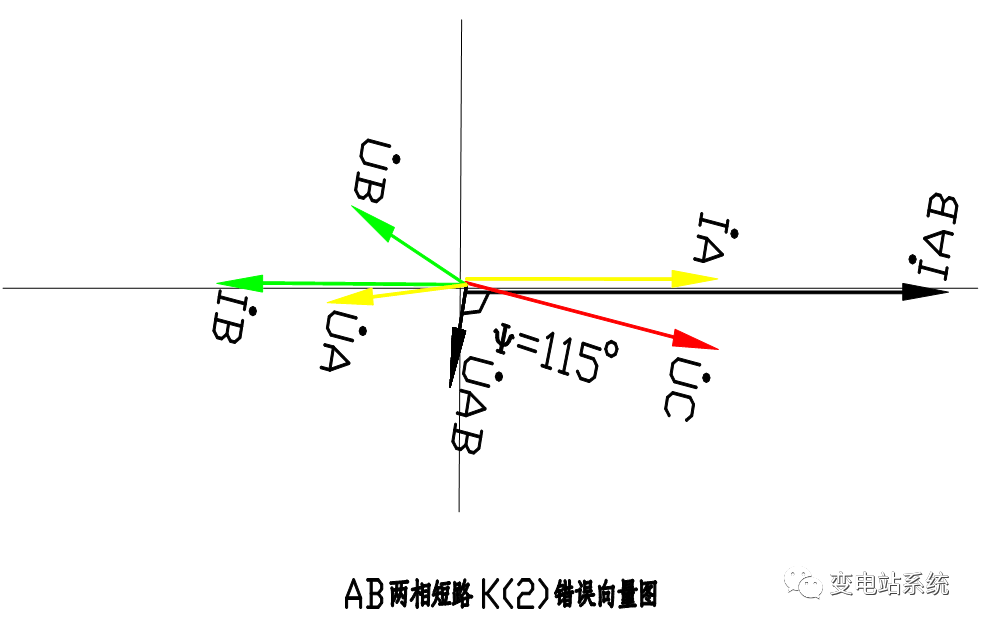 3、零序电流向量为位于故障两相电流间。