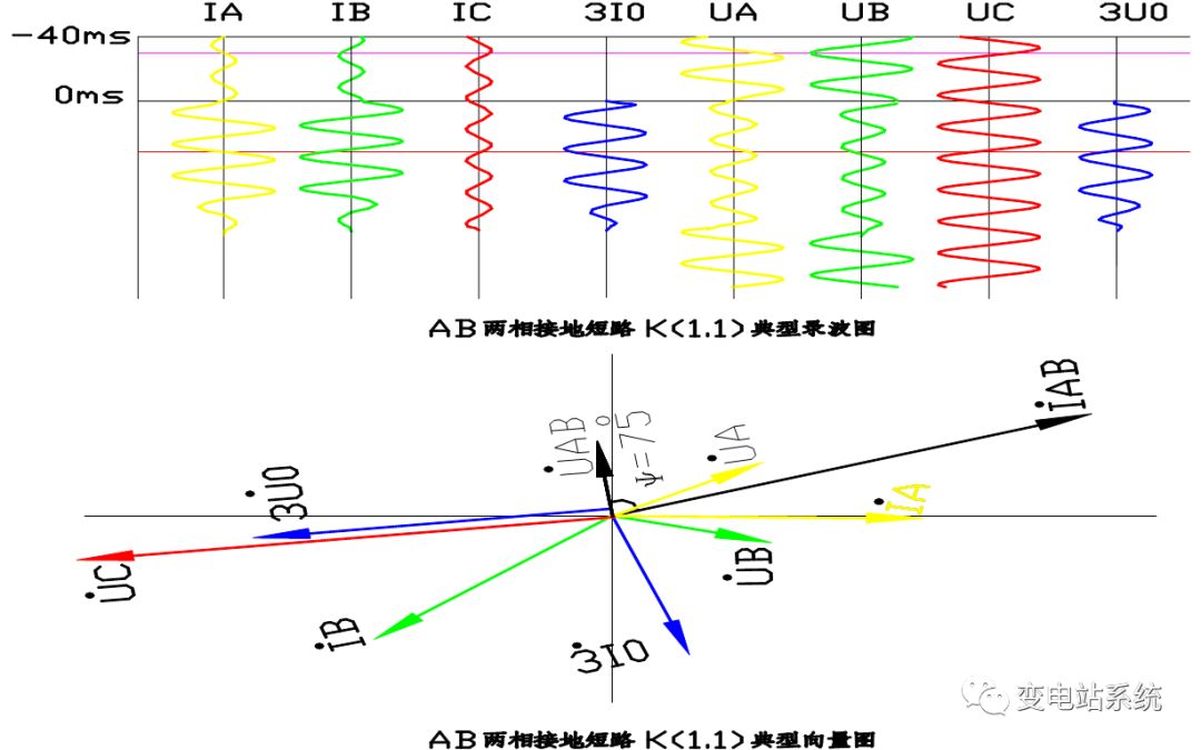 分析两相接地短路故障录波图要点:
