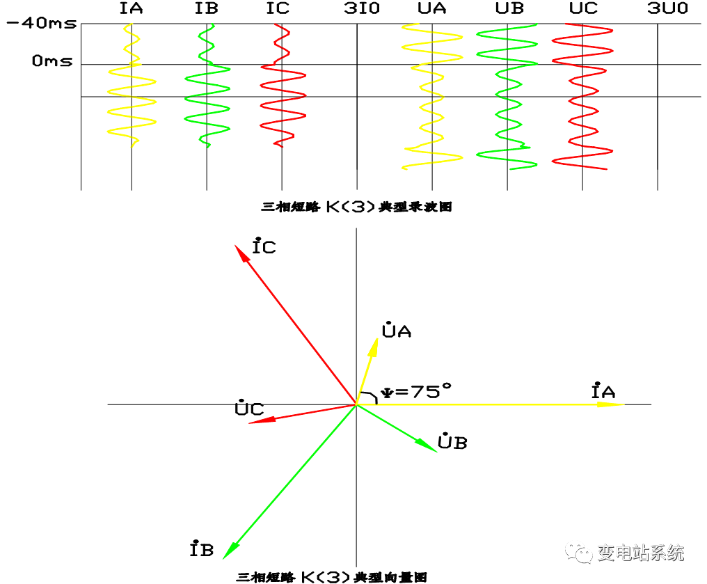 分析三相短路故障录波图要点: