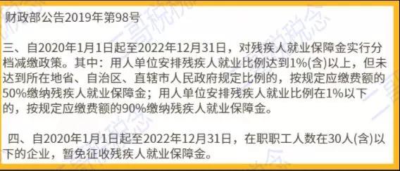 条件:在职职工人数30人(含)以下。所以,职工人数30人以下的,从2020年开始,暂免征收残保金。