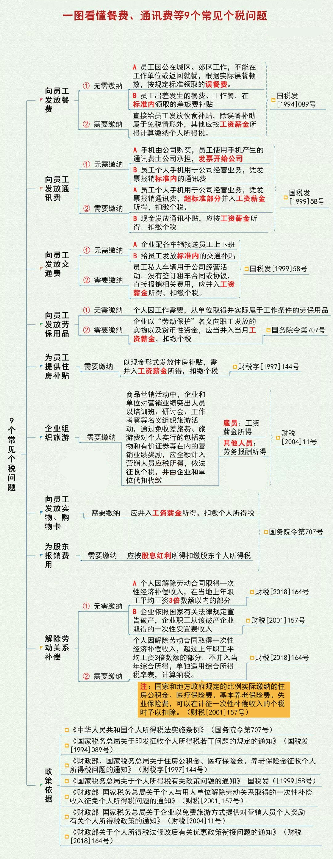 餐补、通讯费、交通费、私车公用等9个常见个税问题,一图搞定!