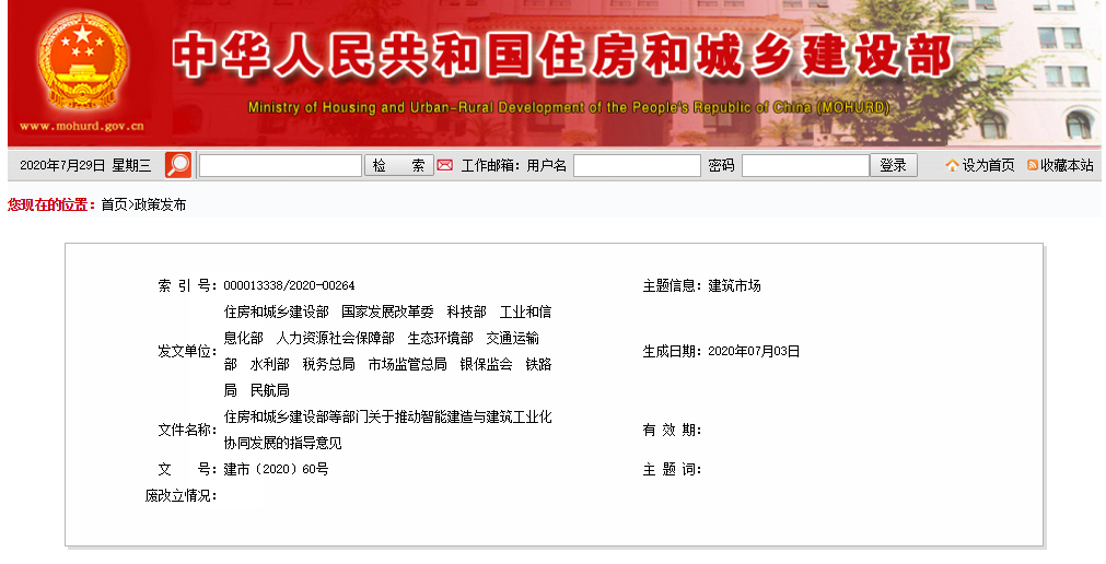 住房和城乡建设部等部门关于推动智能建造与建筑工业化协同发展的指导意见