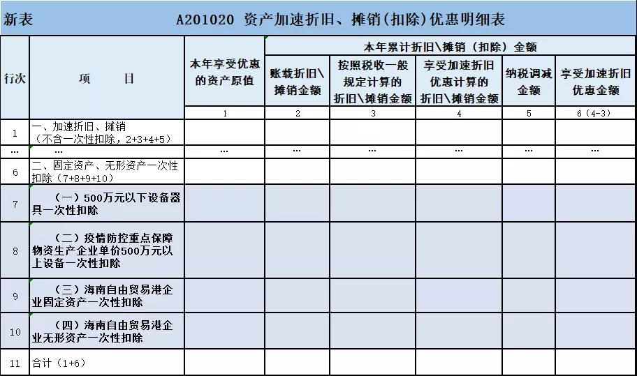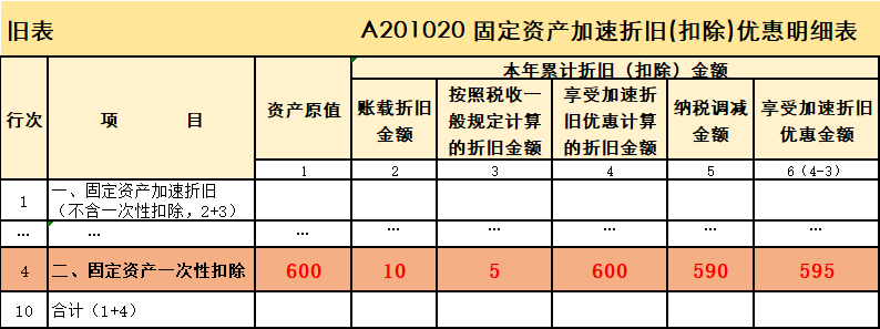 3.明确对于享受一次性扣除政策的固定资产、无形资产,该表第3列“按照税收一般规定计算的折旧\摊销金额”应填报按照税收一般规定计算的1个月的折旧摊销金额。