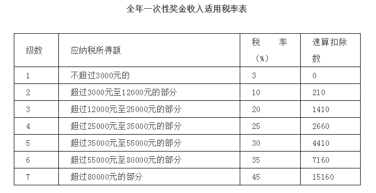 全年一次性奖金税率表