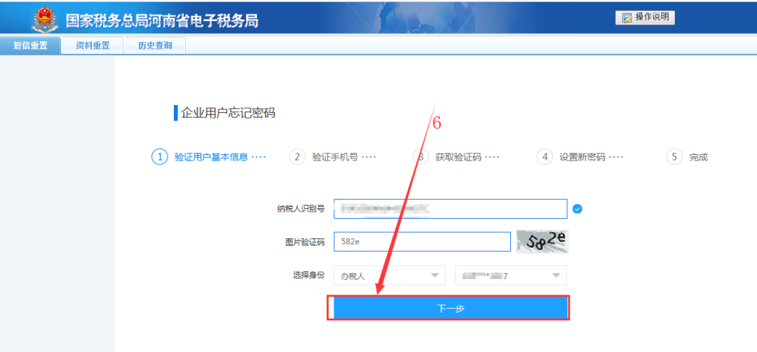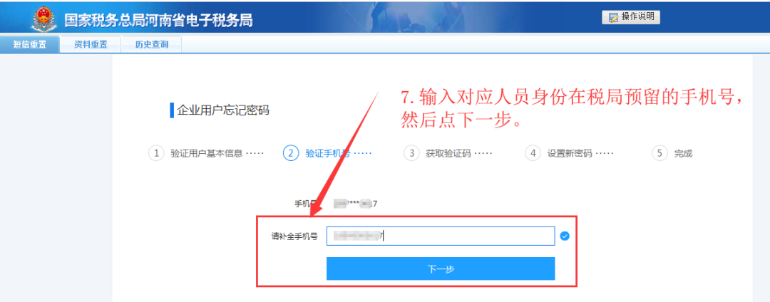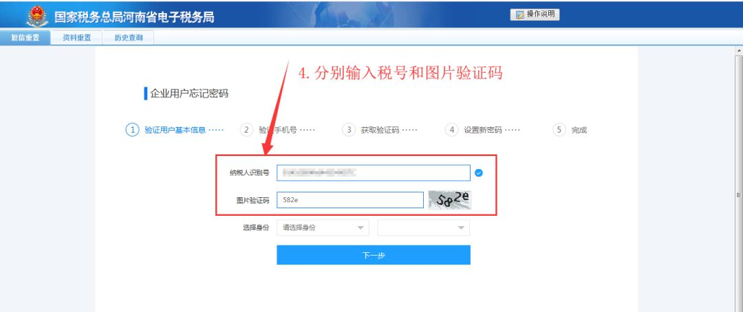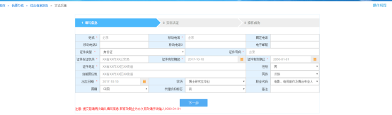 2、录入必录信息后点击“下一步”: