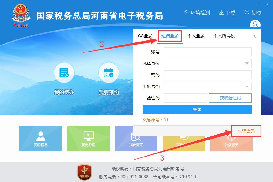 已注册的用户,请直接输入原先的账号密码(忘记密码请点击登录框右下角“忘记密码”),若系统校验密码不符,则无法进入下一步,如下图所示: