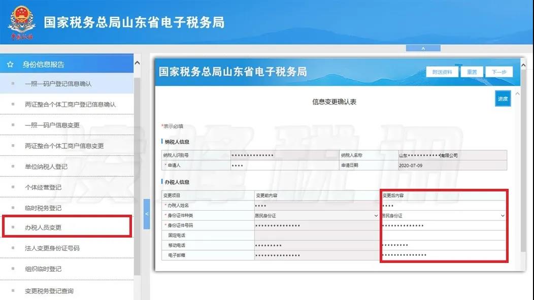 以山东省为例,登录山东省电子税务局,依次点击“我要办税”→“综合信息报告”→“身份信息报告”→“办税人员变更”,办理信息变更。