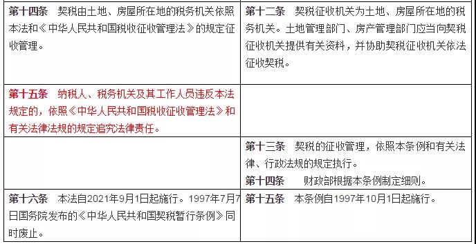 第十六条本法自2021年9月1日起施行。1997年7月7日国务院发布的《中华人民共和国契税暂行条例》同时废止。