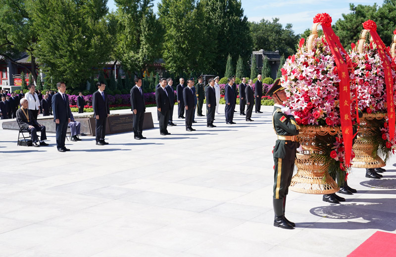 9月3日上午,习近平、李克强、栗战书、汪洋、王沪宁、赵乐际、韩正、王岐山等党和国家领导人来到中国人民抗日战争纪念馆,出席纪念中国人民抗日战争暨世界反法西斯战争胜利75周年向抗战烈士敬献花篮仪式。新华社记者 王晔 摄