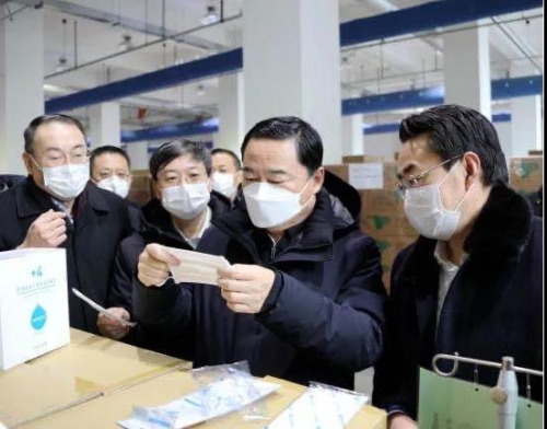▲2月7日,国资委党委书记、主任、应对新型冠状病毒感染肺炎疫情工作领导小组组长郝鹏在通用技术集团所属中国医药物流中心实地查看医用口罩、防护服、克力芝等重点医疗防控物资和药品的采购、存储、发运情况。