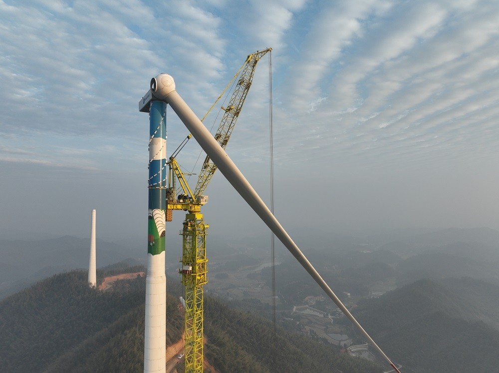 近日,随着最后一段风机叶片精准对接轮毂,集团公司承建的湖南衡山风电项目首台风机吊装作业顺利完成,标志着项目建设迈入核心工程攻坚阶段,为后续并网发电奠定坚实基础。