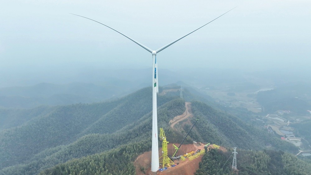 湖南衡山风电项目地处山区,地形复杂、山势陡峭,施工条件极为苛刻。项目施工内容涵盖进场道路修建、集电线路铺设、开关站建设及4台风机吊装等核心环节,其中多项工程面临“硬骨头”挑战。进场道路作为施工“生命线”,需在斜坡的山体间开辟路径,既要克服地质松软、边坡易滑坡的风险,又要保护山区生态环境,施工团队多次优化线路设计,历时两个月完成山路修建,确保大型设备与材料顺利进场。