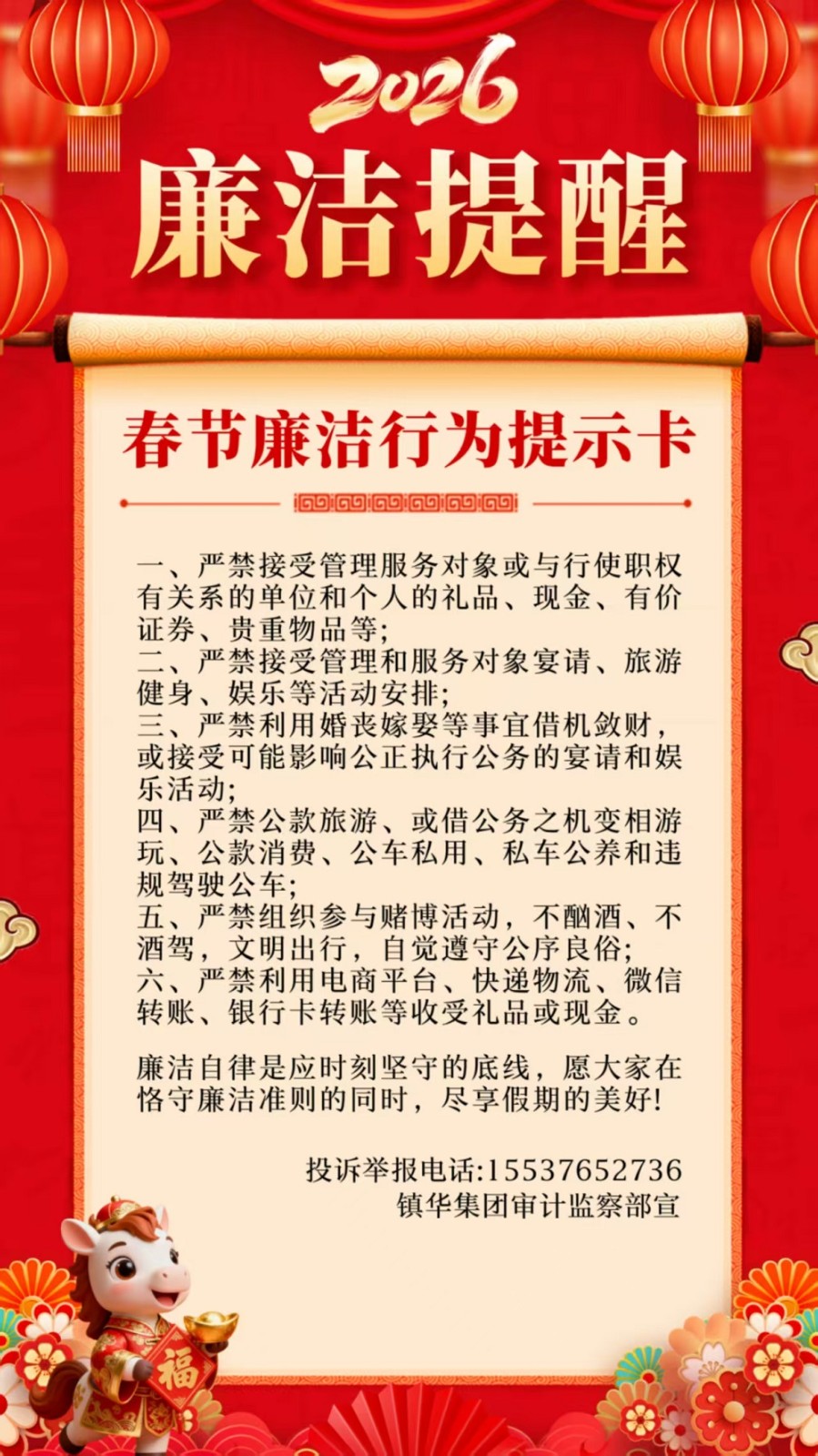 【廉洁提醒】廉洁同行 欢度春节