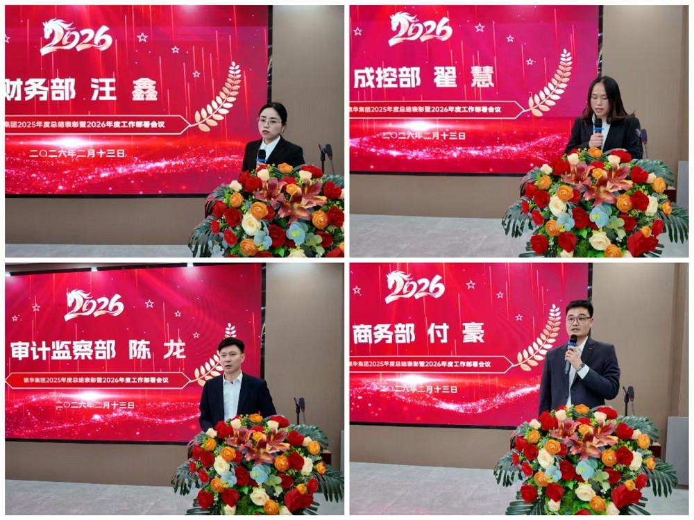2026年2月13日,镇华集团2025年度总结表彰暨2026年度工作部署会议在集团公司5楼会议室隆重召开。会议全面总结分析2025年集团公司整体工作情况、表彰先进典型,并安排部署2026年重点工作,共忆耕耘之路,共绘发展蓝图,为“十五五”开局之年凝聚奋进力量。集团公司董事长上官绪镇、总经理上官同耀、各分管领导及分、子公司代表等共计150余人出席会议,本次会议由副总经理谢梅主持。