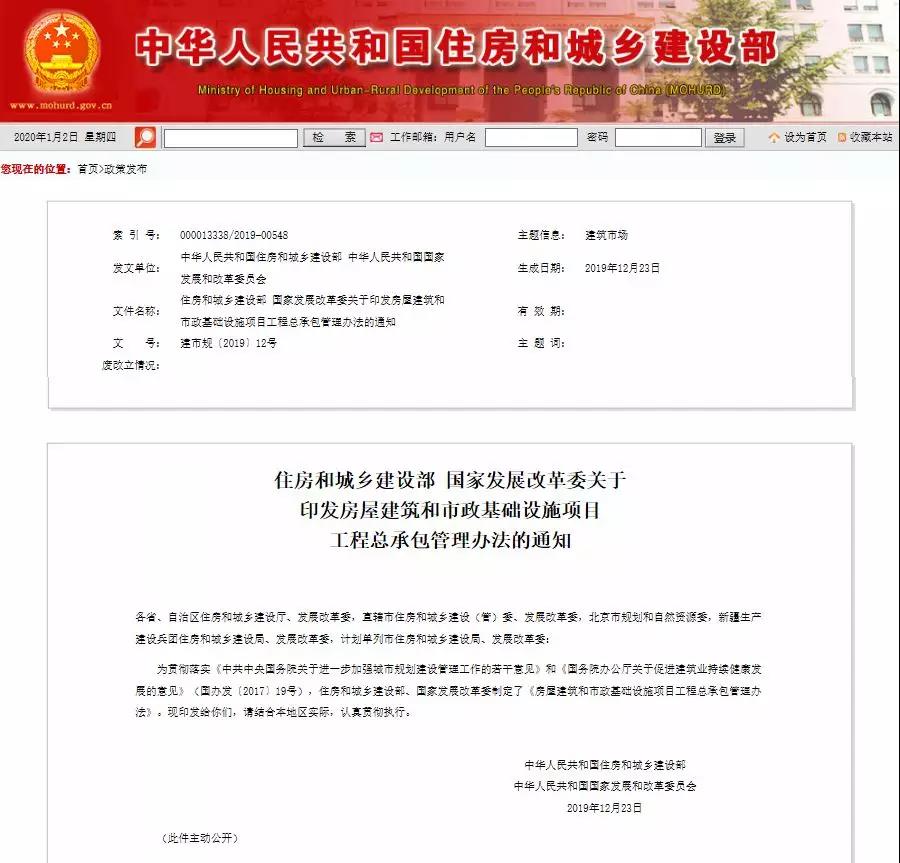 为贯彻落实《中共中央国务院关于进一步加强城市规划建设管理工作的若干意见》和《国务院办公厅关于促进建筑业持续健康发展的意见》(国办发〔2017〕19号),住房和城乡建设部、国家发展改革委制定了《房屋建筑和市政基础设施项目工程总承包管理办法》。现印发给你们,请结合本地区实际,认真贯彻执行。