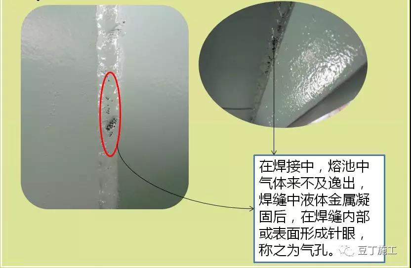 1、坡口及其周边一定范围内有油迹、锈斑、水渍、污物(特别是漆痕),是导致焊缝出现气 孔的一个原因。