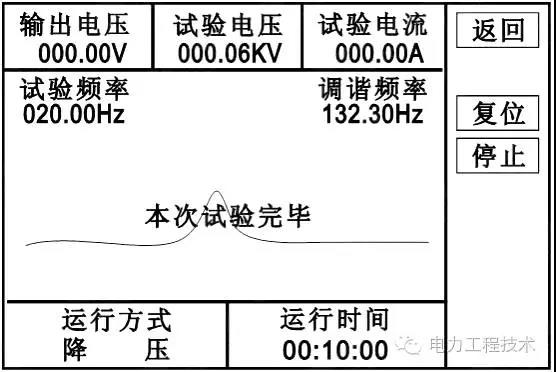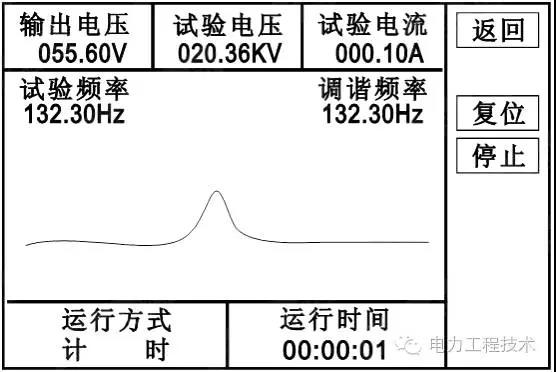 手动试验:点击频率“加、减”,则手动调谐,调谐完成后点击电压“加、减”手动升压。