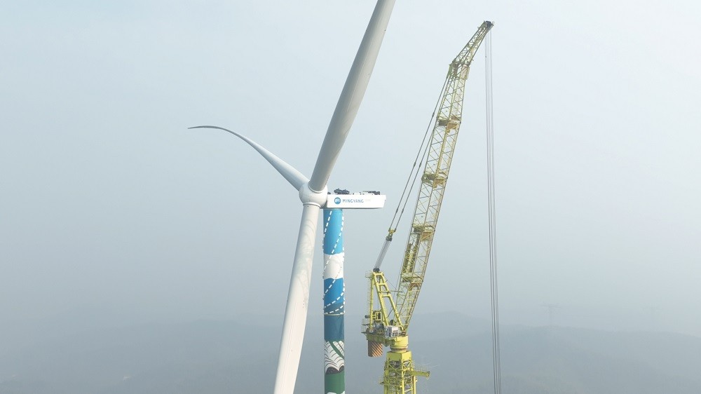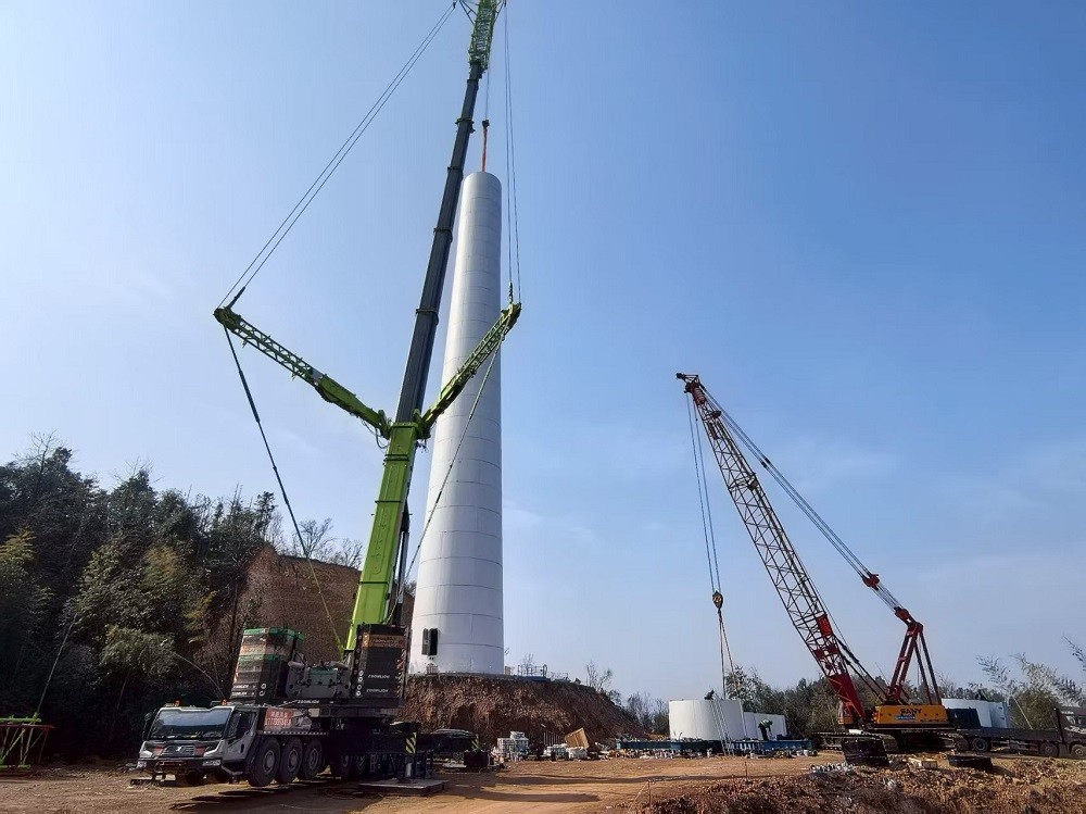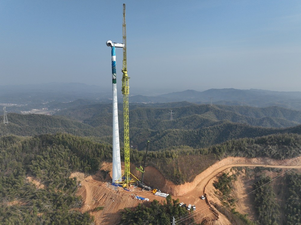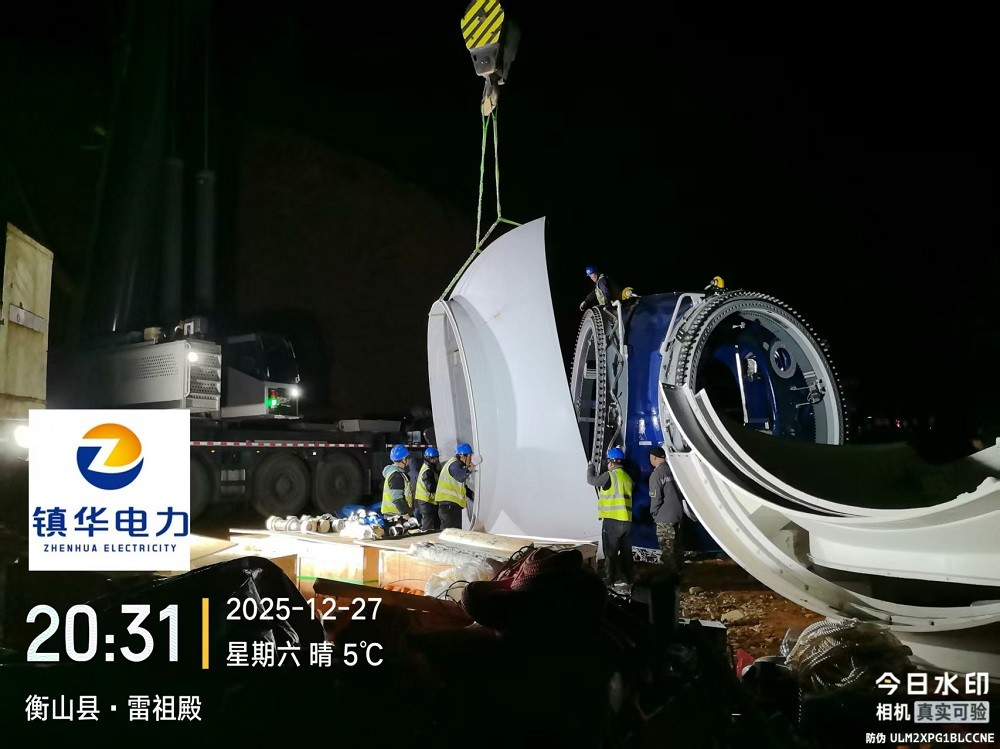 风机吊装是项目核心难点,单台风机轮毂中心高度达150米,叶片长度105米,且山区风力多变、能见度不稳定,对吊装精度与安全控制提出极高要求。为确保首吊成功,项目团队成立专项攻坚小组,多次组织论证吊装方案,优化起重机站位与吊装顺序;全体施工人员实行昼夜作业模式,白天抢运设备、调试机械,夜间攻克技术难题、排查安全隐患,最终精准完成风机机舱、轮毂及叶片的吊装对接,全程零安全事故。