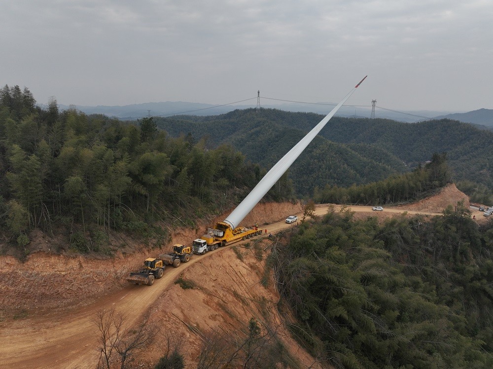 湖南衡山风电项目地处山区,地形复杂、山势陡峭,施工条件极为苛刻。项目施工内容涵盖进场道路修建、集电线路铺设、开关站建设及4台风机吊装等核心环节,其中多项工程面临“硬骨头”挑战。进场道路作为施工“生命线”,需在斜坡的山体间开辟路径,既要克服地质松软、边坡易滑坡的风险,又要保护山区生态环境,施工团队多次优化线路设计,历时两个月完成山路修建,确保大型设备与材料顺利进场。