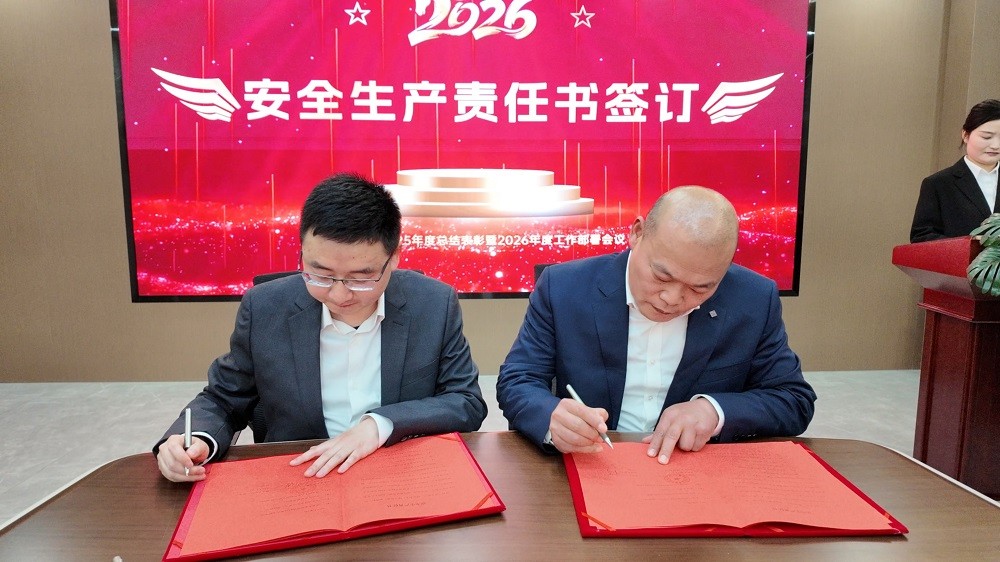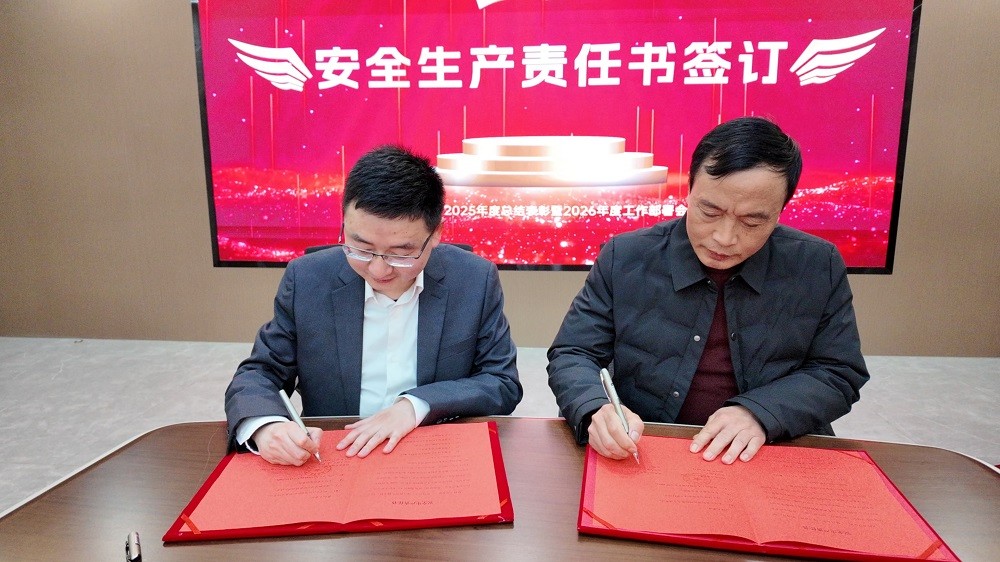 大会进入表彰环节,集团对2025年度涌现出的优秀员工、优秀项目经理、优秀党员予以隆重嘉奖,并由先进榜样发表获奖感言,激励全体员工争先创优、主动作为。随后,总经理与各相关负责人共同签署《2026年度安全生产责任书》,以一纸责任书压实一份硬担当,全力筑牢安全生产防线。